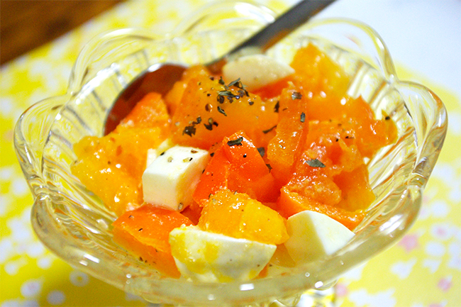 ほんとはスライスにして、チーズと交互に並べてオサレなかんじにしたかったけど。