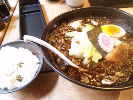 烏丸にある五行の焦がし味噌ラーメンっ。見た目くろーいですがそんなに濃くないしこってりもしてない。